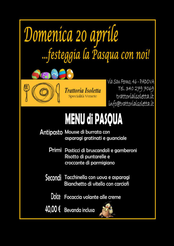 Unitevi a noi per festeggiare la Pasqua con un menu speciale, che esalta i sapori della nostra cucina tradizionale.